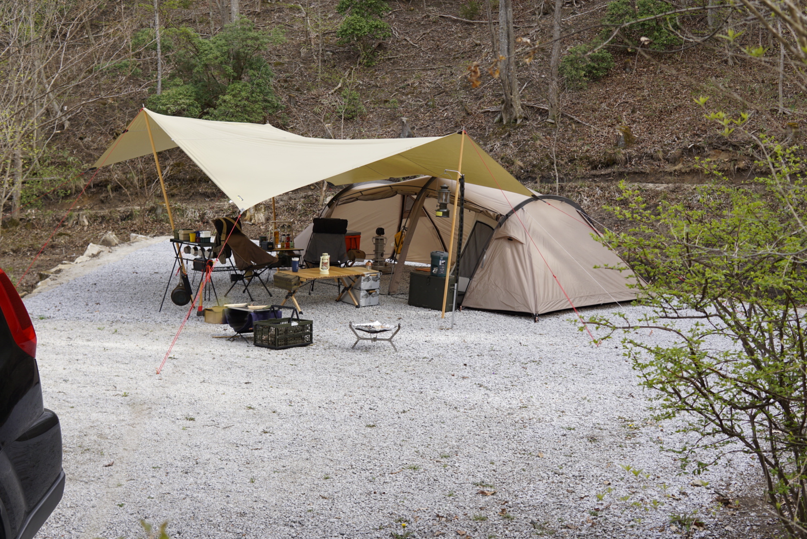 料金:無料 サイト:10サイト、フリーサイト (※情報が変わっている場合もありますので、キャンプ場に直接ご確認ください。) 管理棟 案内看板とトイレ トイレはワイル.